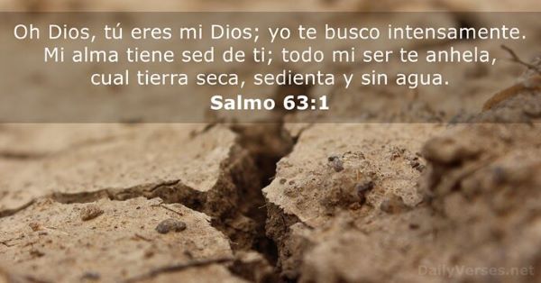 En nuestra vida cotidiana, también atravesamos “tierras secas”: preocupaciones económicas, problemas familiares, cansancio emocional o incertidumbre por el futuro. Este versículo nos recuerda que, aun en esos momentos, existe una fuente que no se agota. Buscar a Dios “de madrugada” no habla solo de una hora del día, sino de ponerlo en primer lugar, de acudir a Él antes que a la ansiedad o al desánimo. Salmos 63:1 nos invita a reconocer dónde estamos saciando nuestra sed. Cuando volvemos el corazón a Dios, incluso en medio de la aridez, encontramos fortaleza, esperanza y una paz que renueva. Que hoy sea un buen día para detenernos, levantar la mirada y recordar que no estamos solos en el desierto